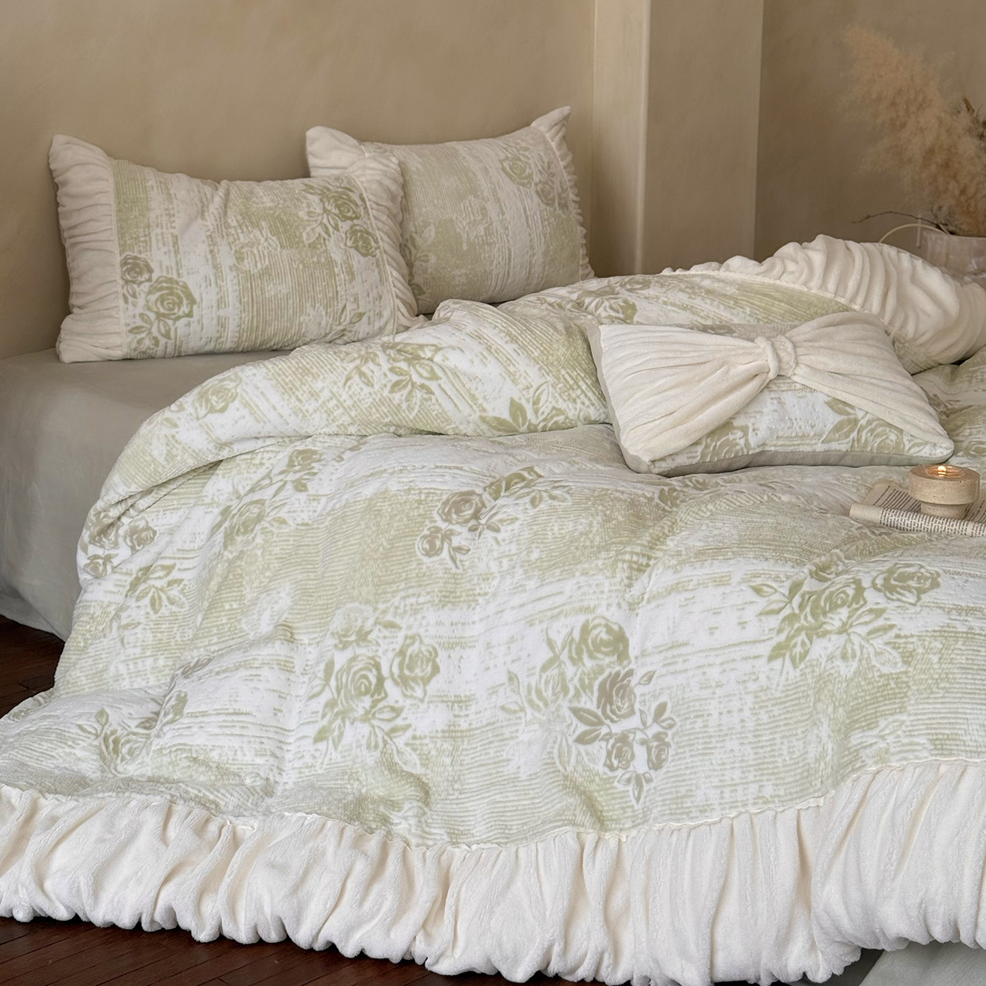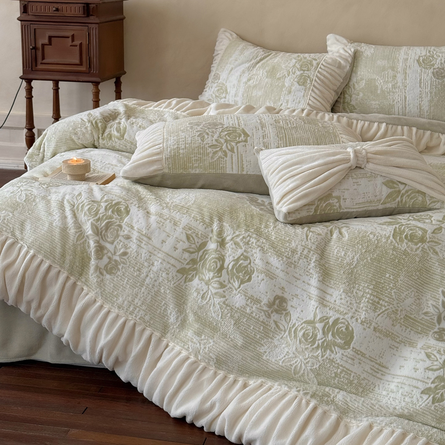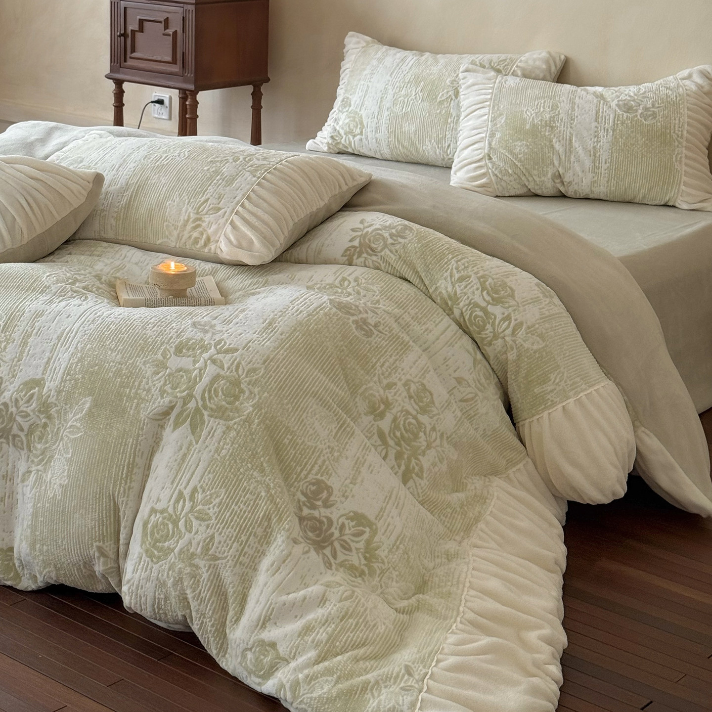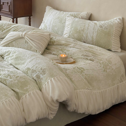 法式复古加厚牛奶绒四件套公主风雕花珊瑚绒双面绒加绒床单冬季