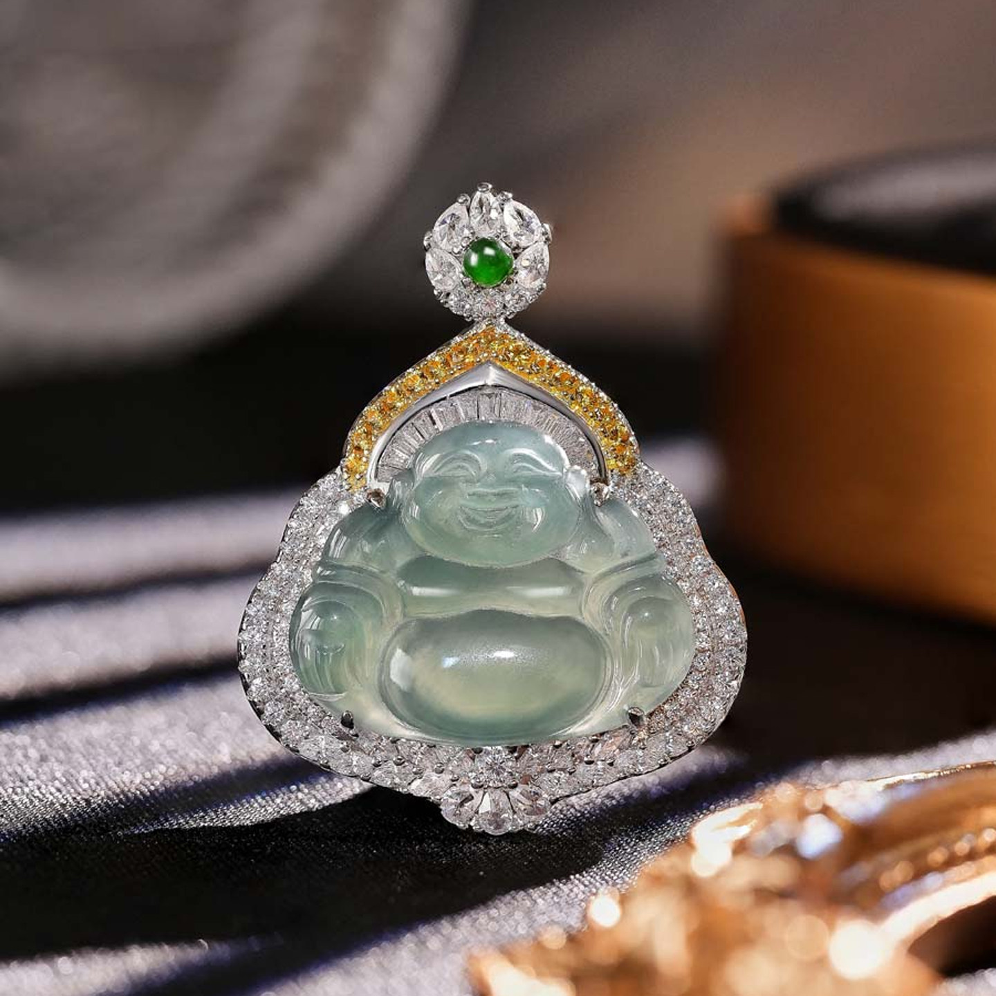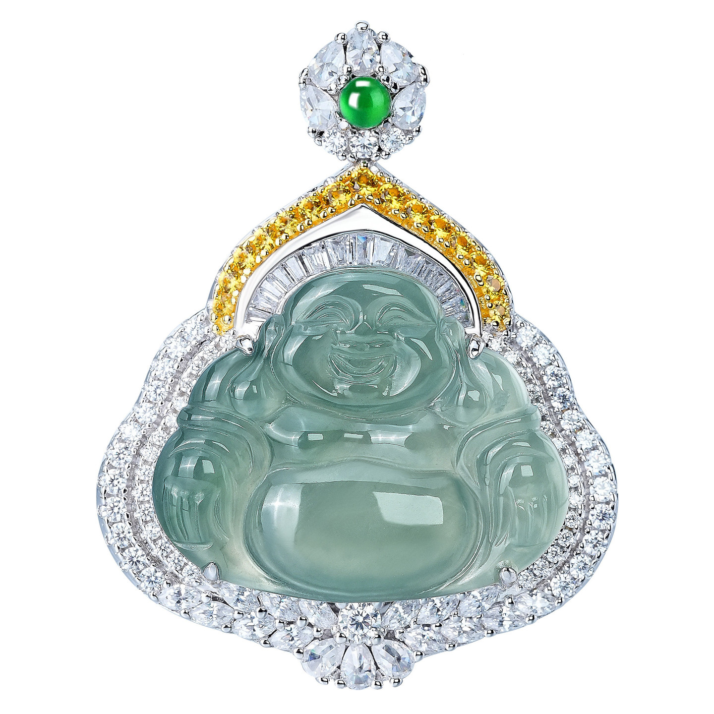 VISING珠宝天然A货冰种翡翠黄钻佛公吊坠项链国风新中式配饰