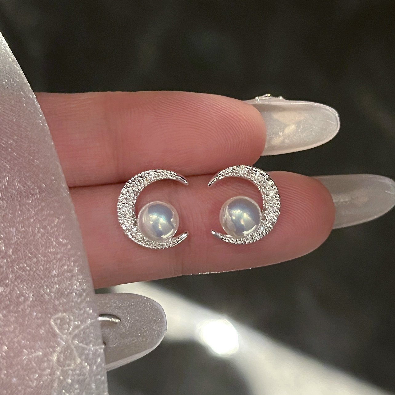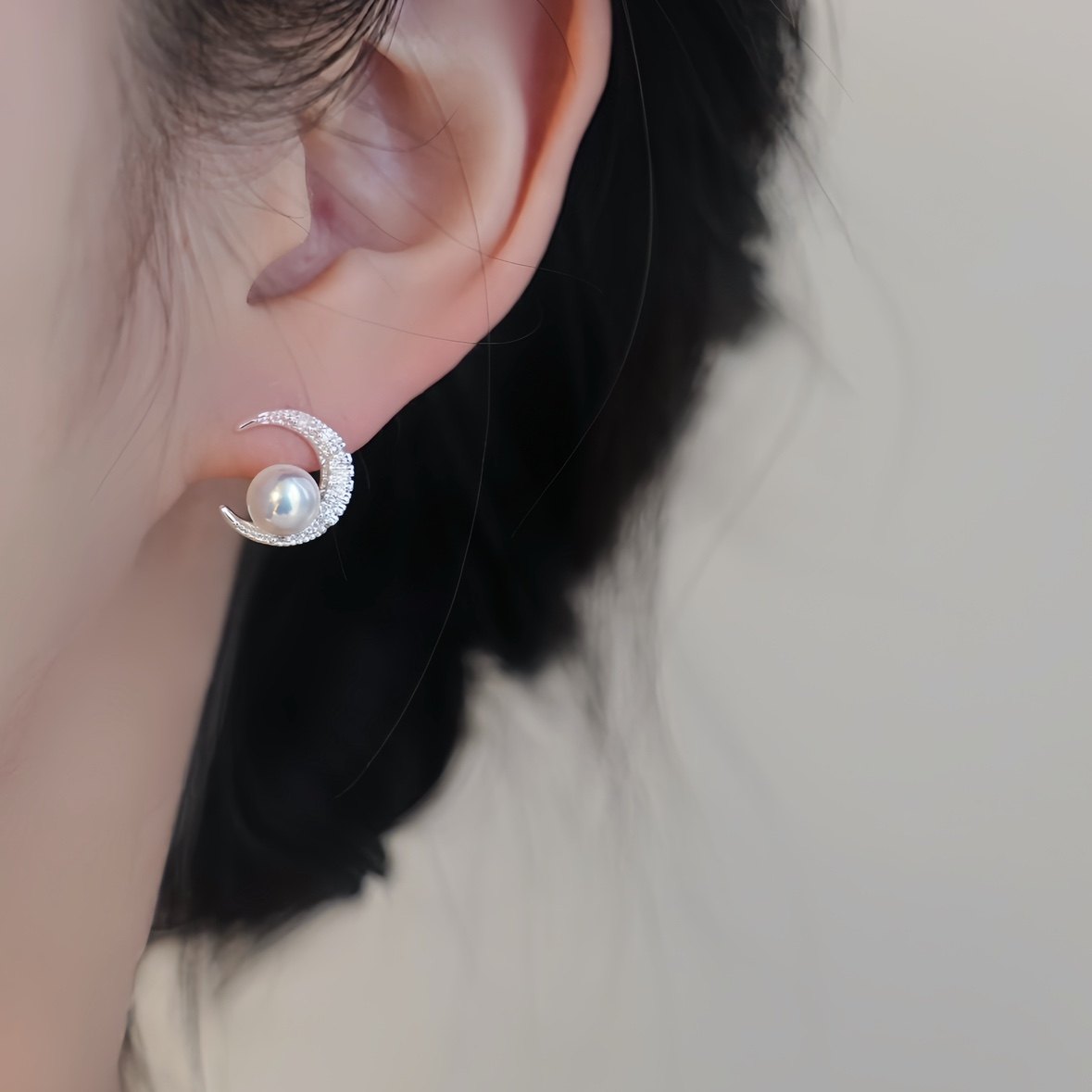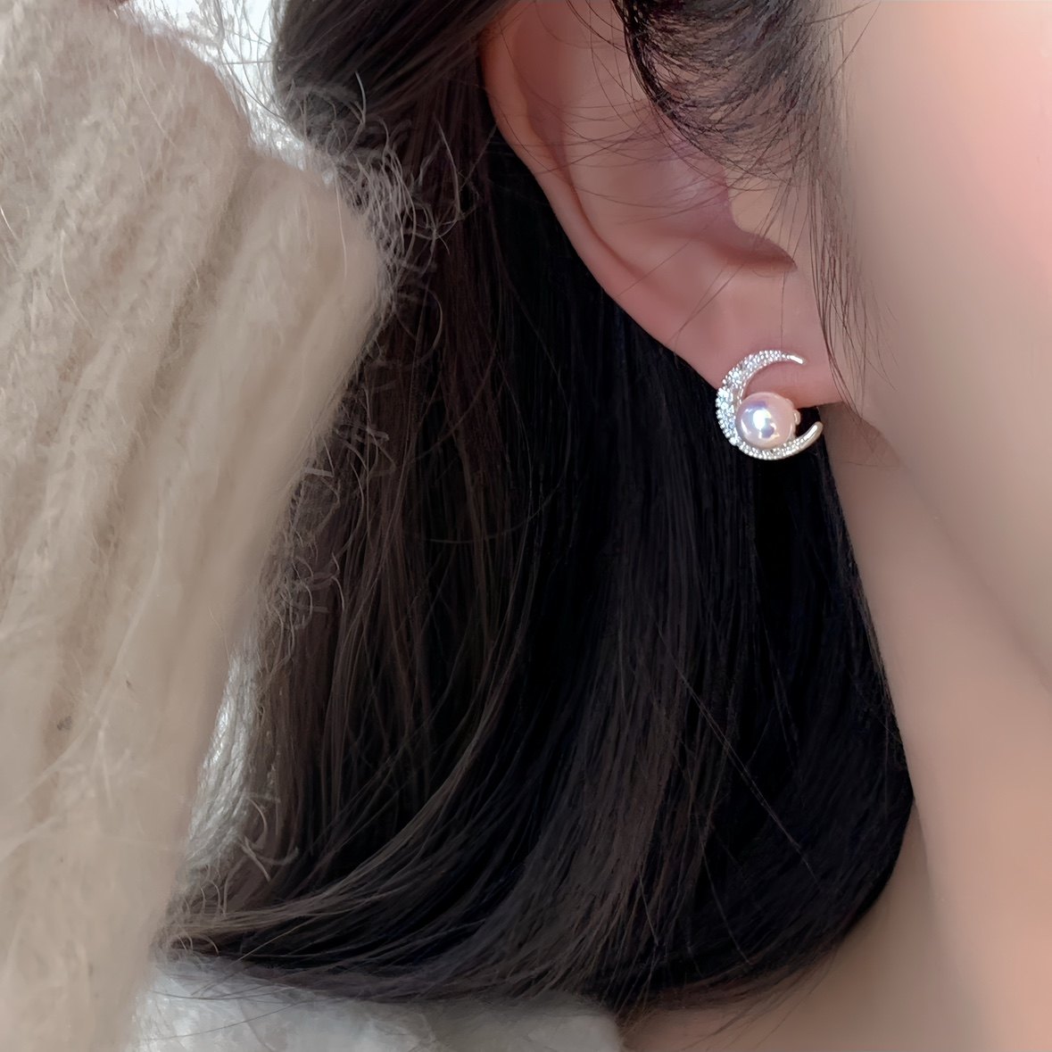 「粉色星海」原创顶j人造akoya珍珠耳饰蚊香盘耳夹无耳洞气质耳钉
