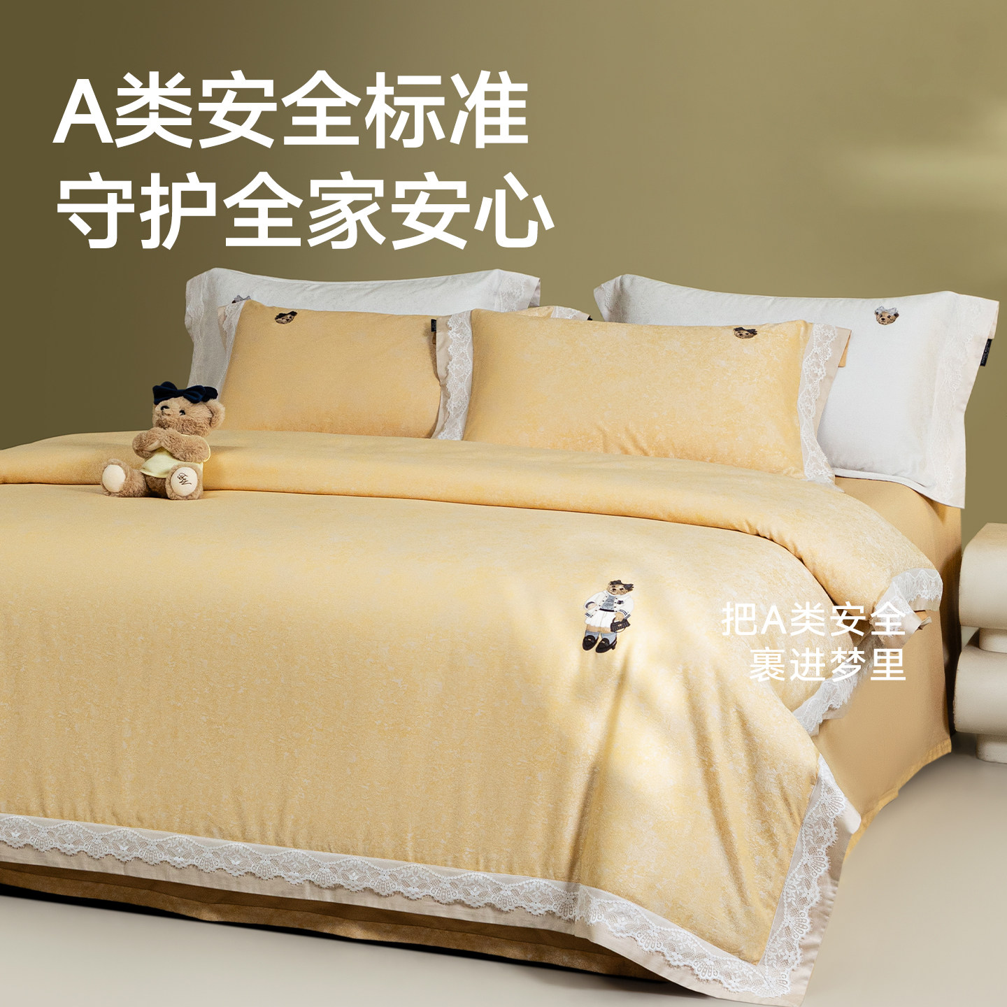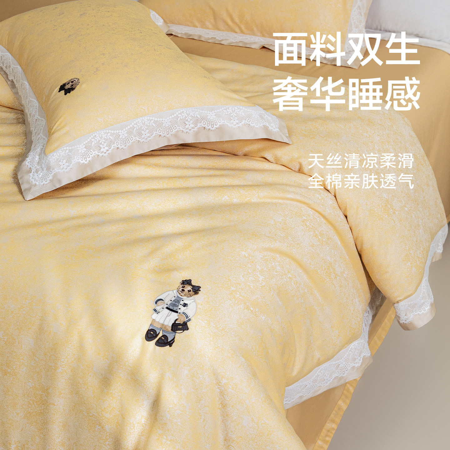 小熊轻奢风天丝长绒棉提花四件套