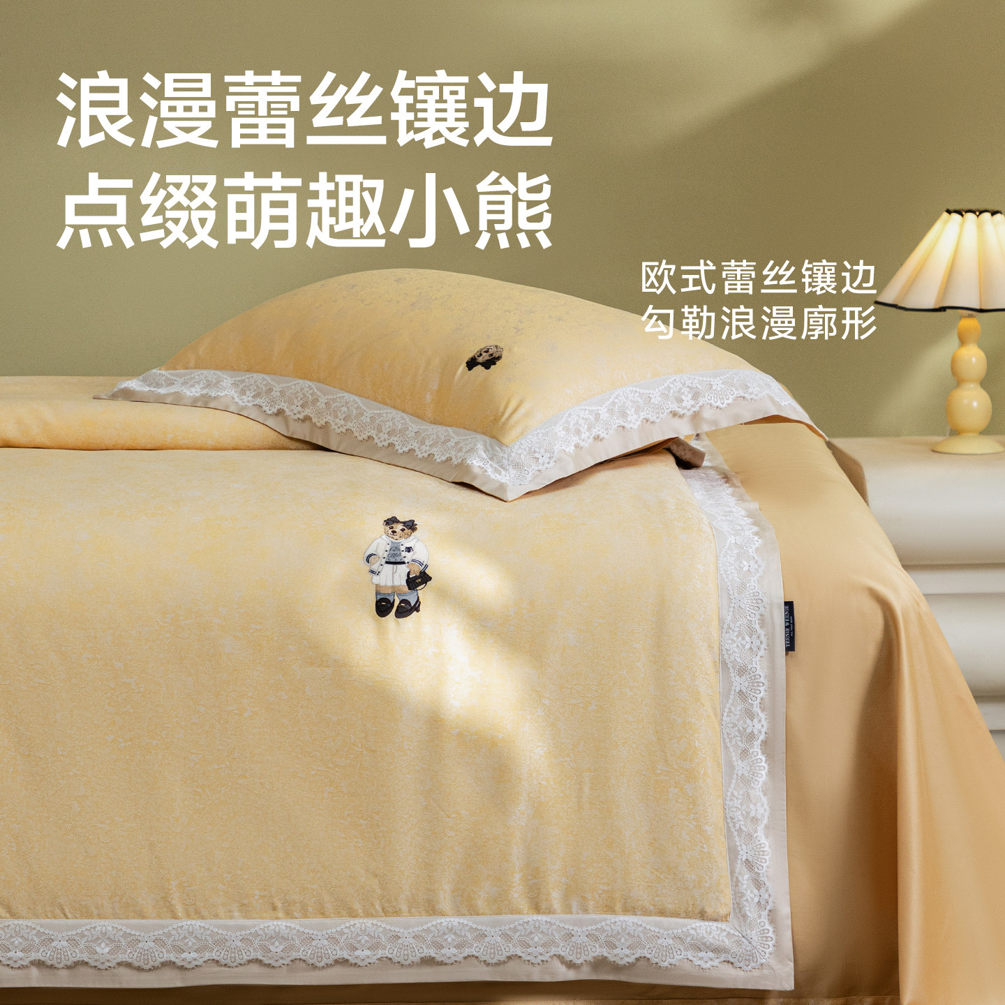 TeenieWeenie法式色织提花超细旦天丝棉四件套蕾丝花边床上用品