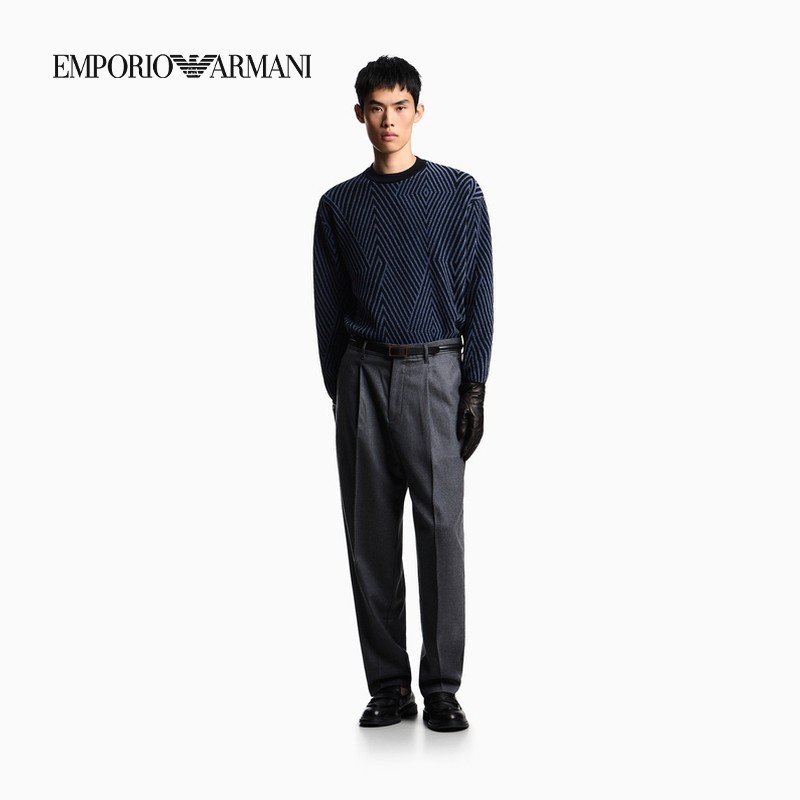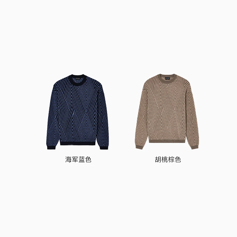 EMPORIO ARMANI/阿玛尼冬季新款男内搭圆领绒感提花套头针织毛衣
