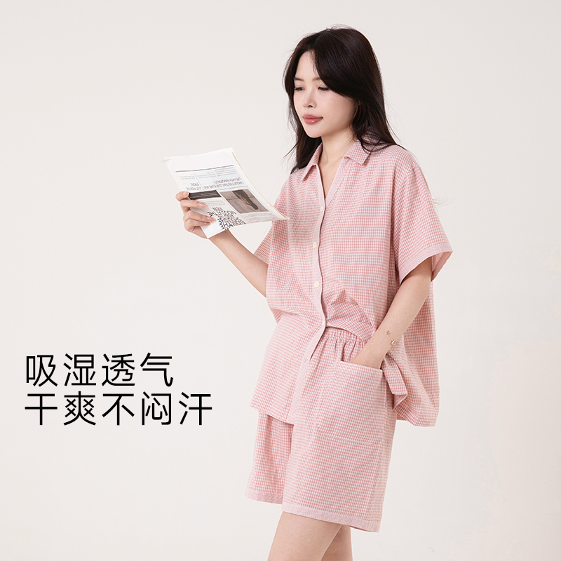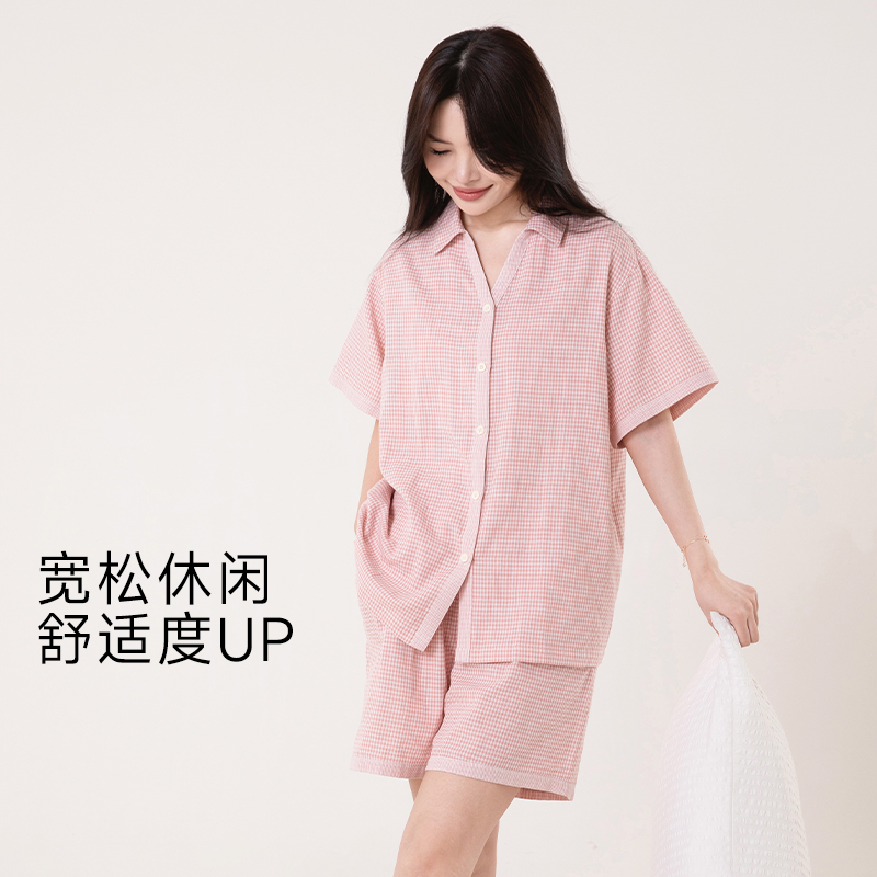 宜色家睡衣女25夏季新款A类100%纯棉舒适短袖短裤情侣家居服套装