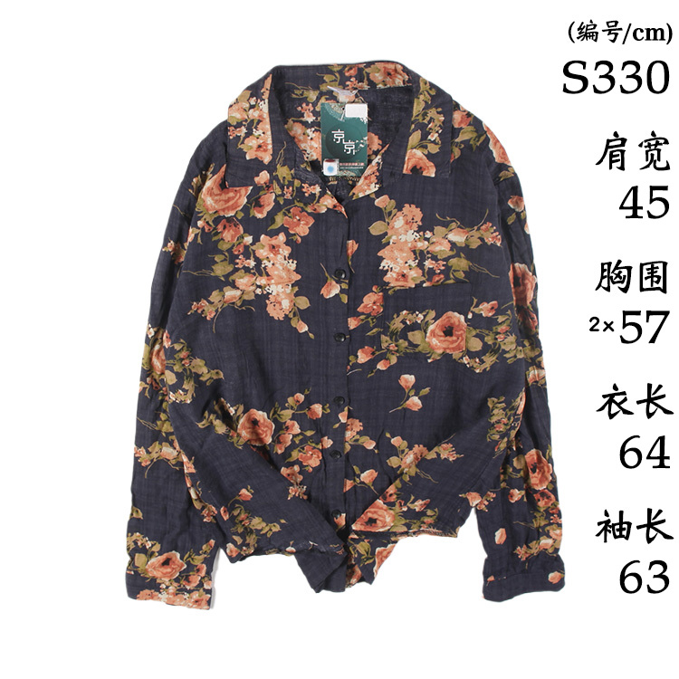 古着vintage复古日系衬衣夏威夷港风宽松巴洛克长袖女碎花衬衫75