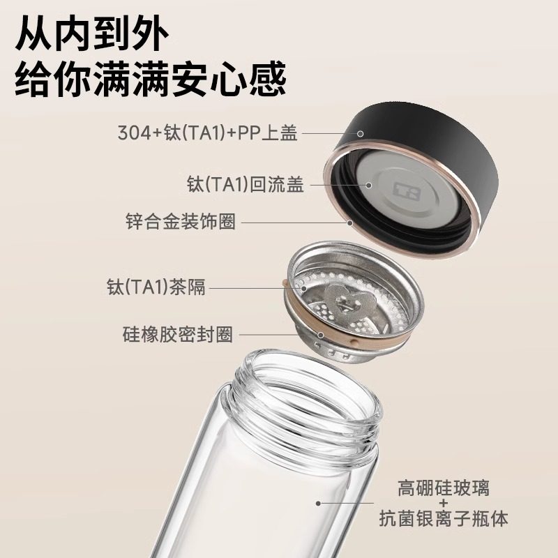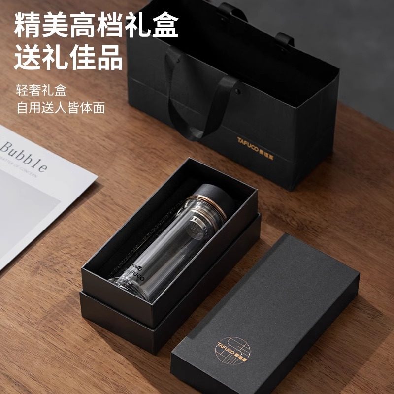 日本泰福高水杯双层玻璃杯男士高档耐高温商务杯子茶水分离泡茶杯