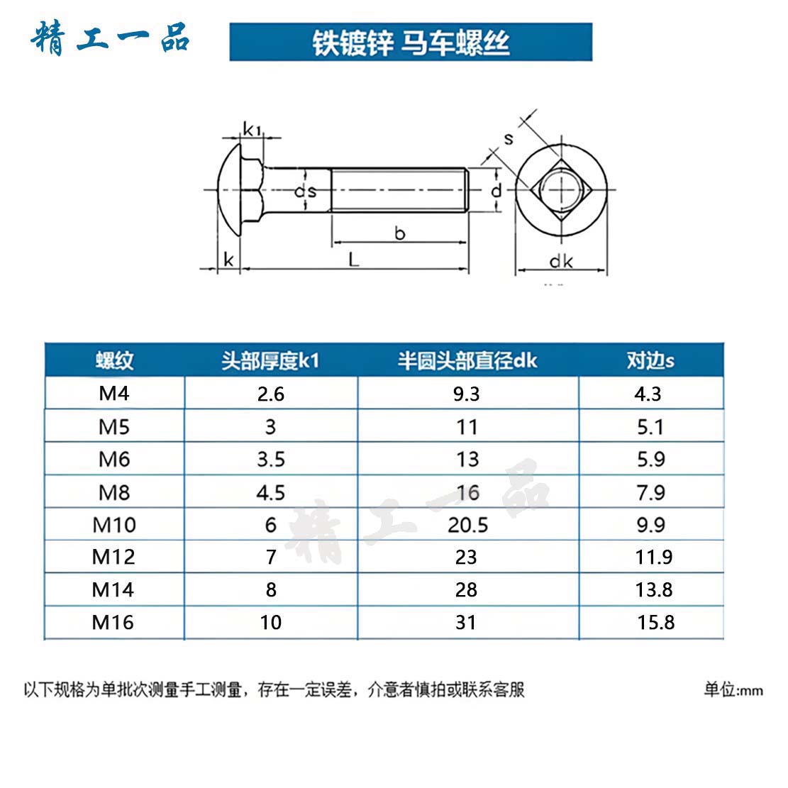 铁马车螺丝镀锌方颈螺栓桥架货架半圆头马车螺栓M4M5M6M8M10M12