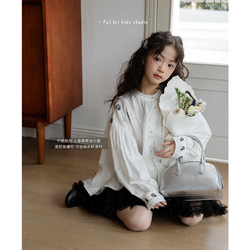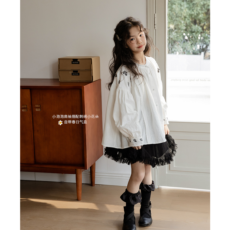 女童衬衫春季长袖2025新款儿童简约百搭洋气白衬衫童装上衣春秋款