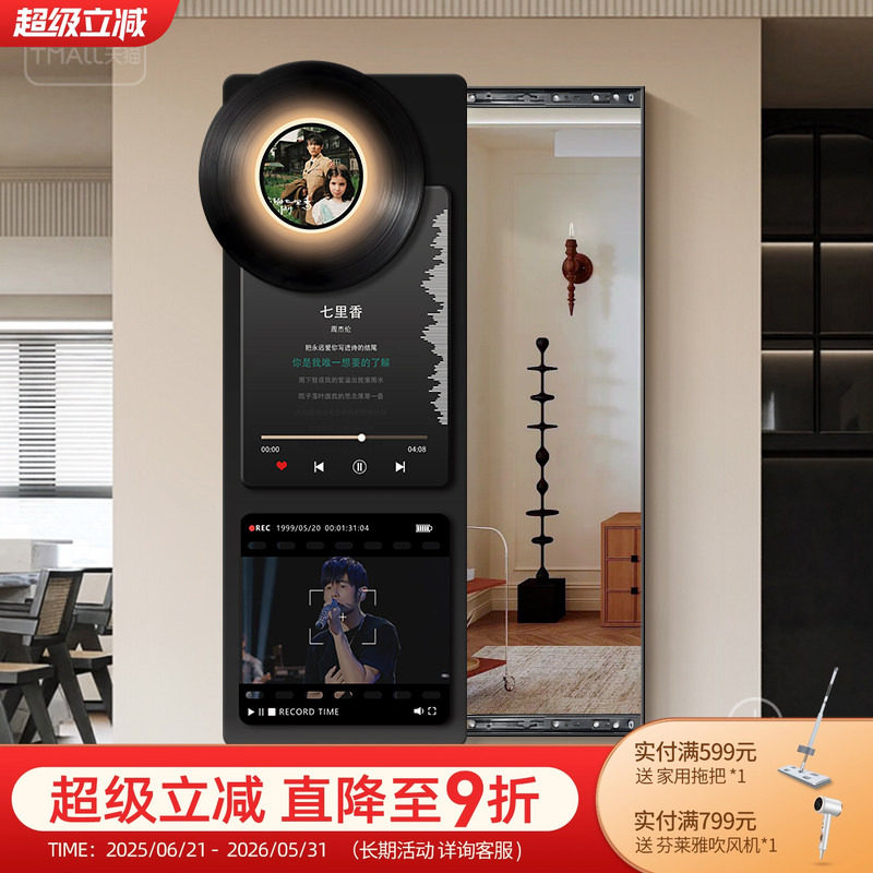 复古风玄关隐形推拉全身镜装饰画黑胶唱片可隐藏暗藏式遮挡穿衣镜