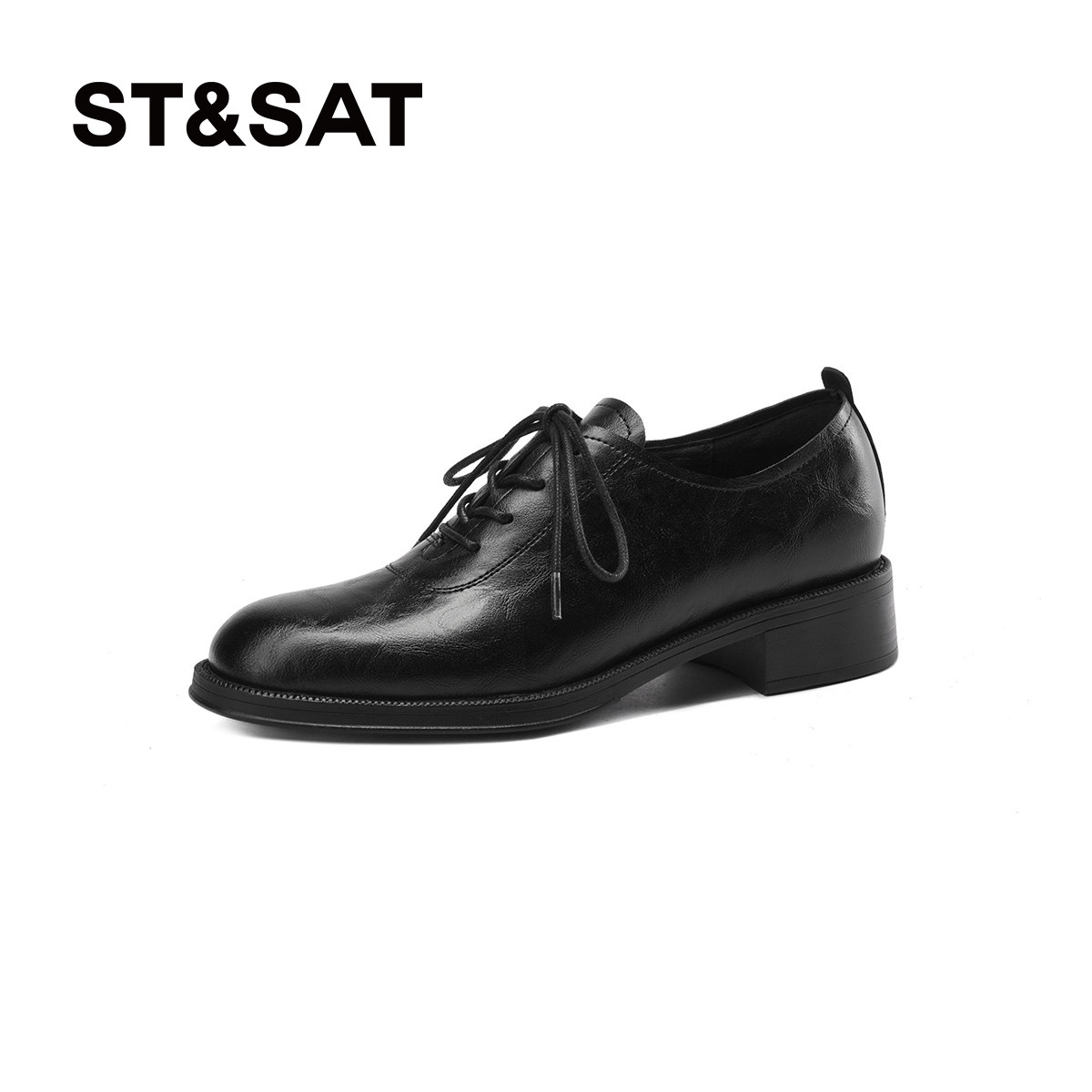 星期六复古系带小皮鞋女2025春秋新款英伦风通勤鞋绒面圆头粗跟