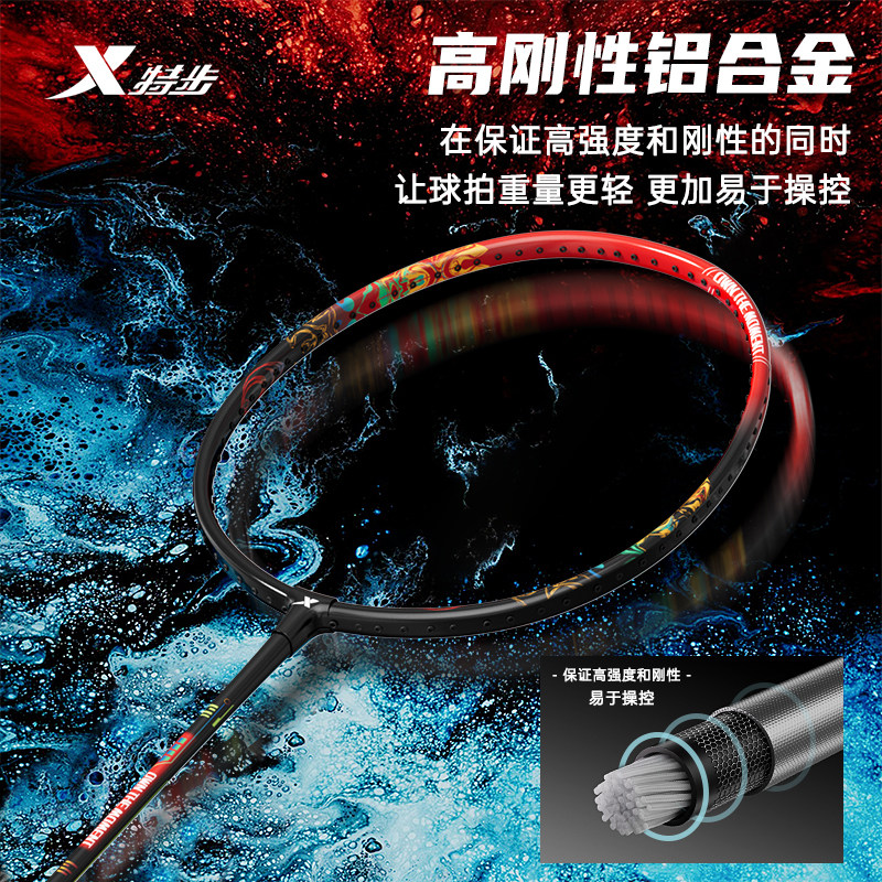 特步正品羽毛球拍官方旗舰店成人小钢炮专业超轻合金单双拍套装