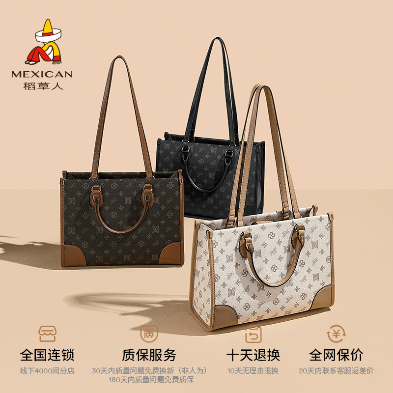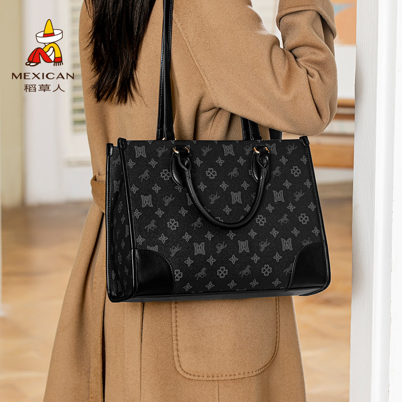 稻草人包包女式2025新款妈妈包高级感大容量单肩包老花通勤手提包