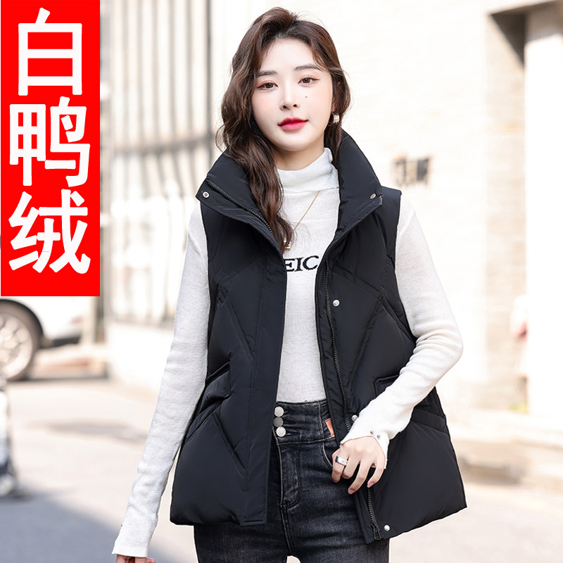 羽绒马甲女款韩版宽松2025新款秋冬白色加厚羽绒背心外穿时尚立领