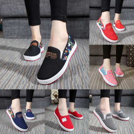 春秋北京老布鞋女鞋韩版一脚蹬懒人单鞋子平底帆布鞋女百搭休闲鞋