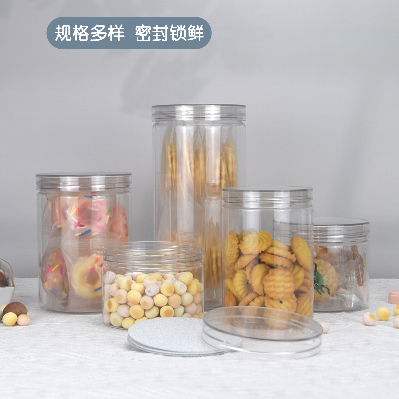 50个水晶盖全透明包装罐饼干桶曲奇雪花酥盒子食品瓶塑料密封圆罐