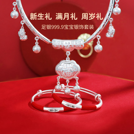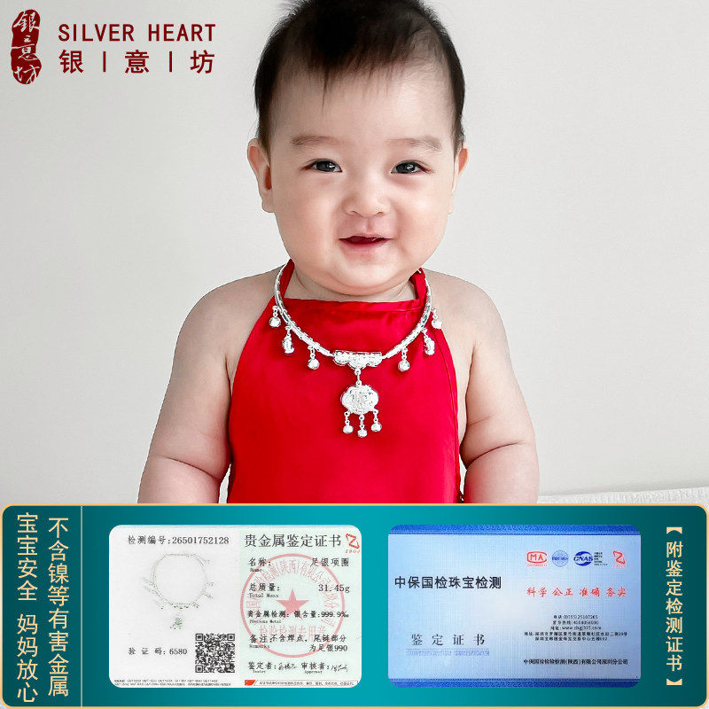 9999纯银项圈宝宝银锁长命锁男女儿童银手镯银饰婴儿满月百天礼物