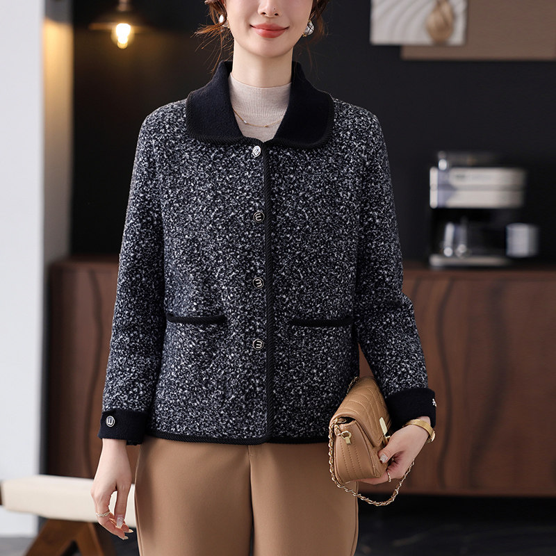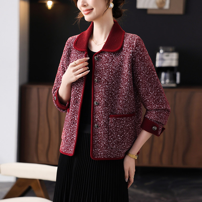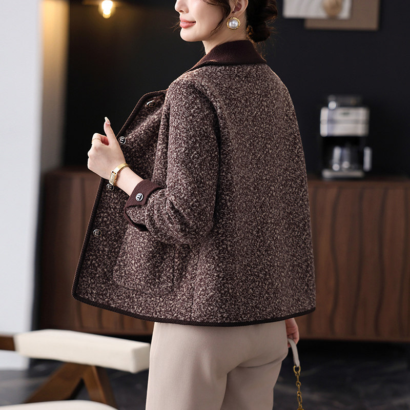 妈妈春秋季新款洋气短款毛呢外套