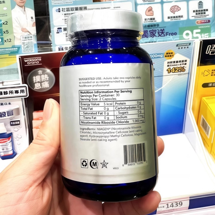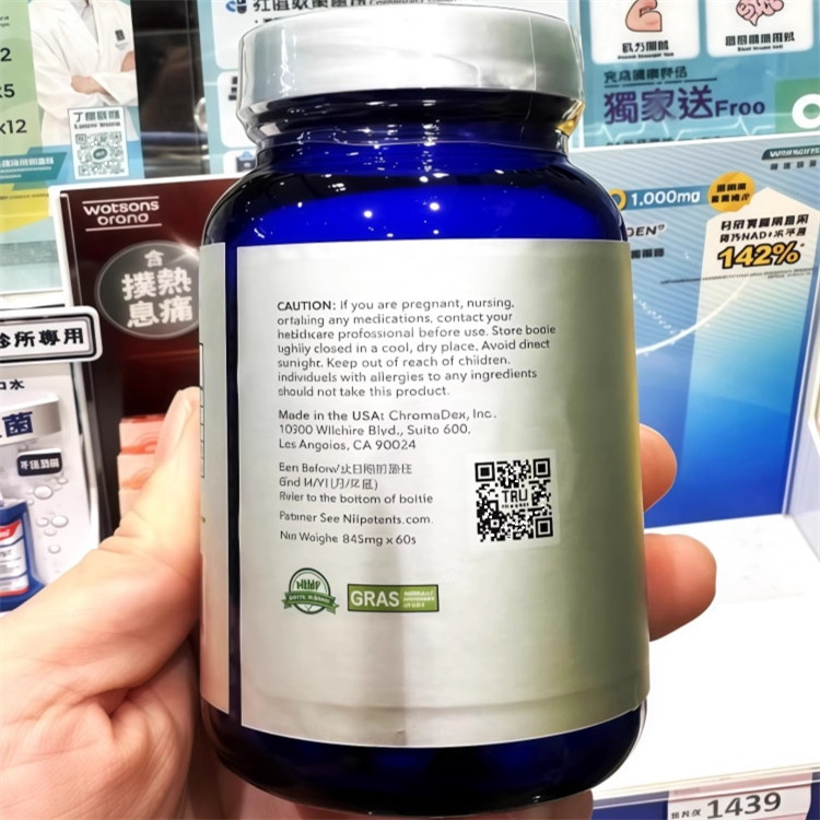 香港代购屈臣氏Tru Niagen乐加欣换颜活龄胶囊60粒1000mg逆转龄