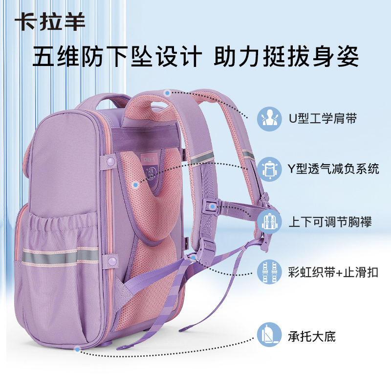 卡拉羊1-4-6年级小学生减负大嘴书包大容量防下坠双肩包男背包女