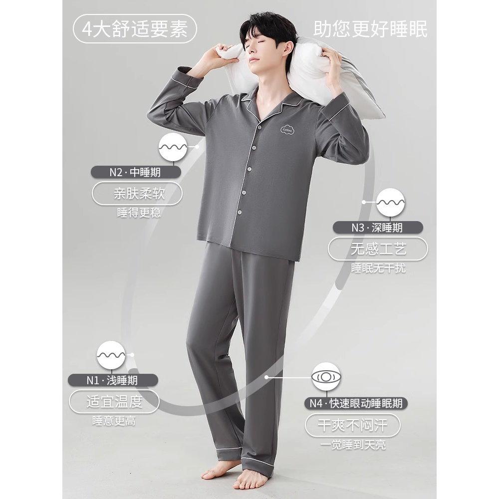 睡衣男士纯棉春秋季长袖2025新款全棉简约家居服男套装可外穿男款