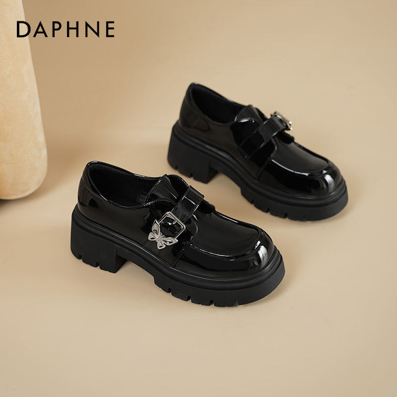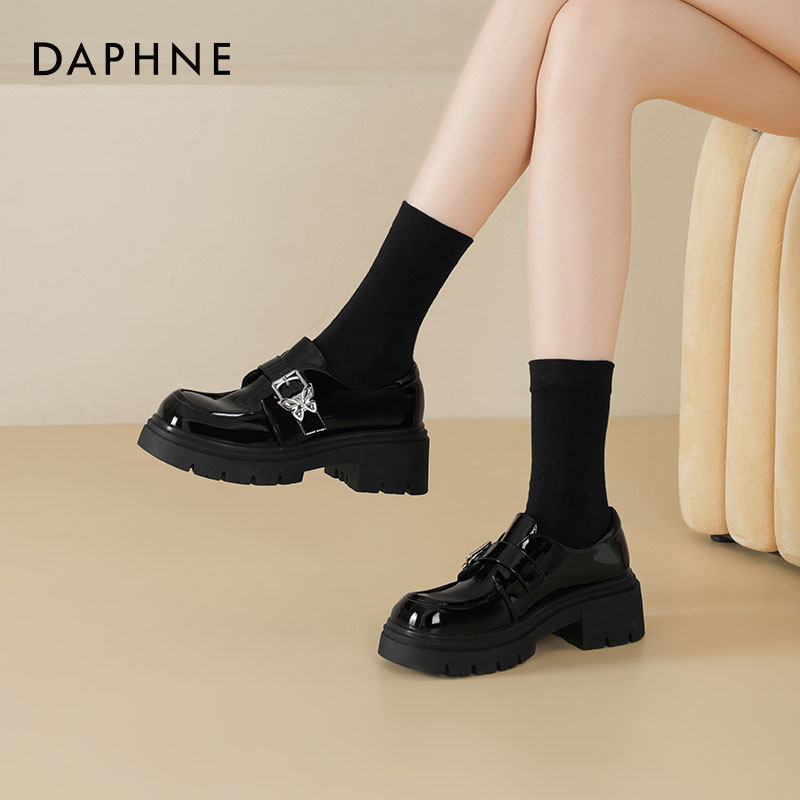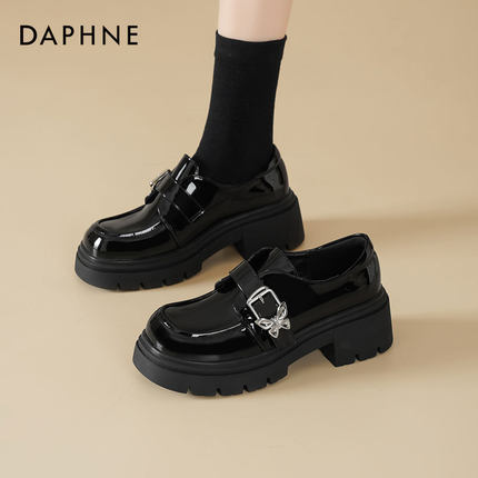 达芙妮厚底乐福鞋女新款黑色皮鞋