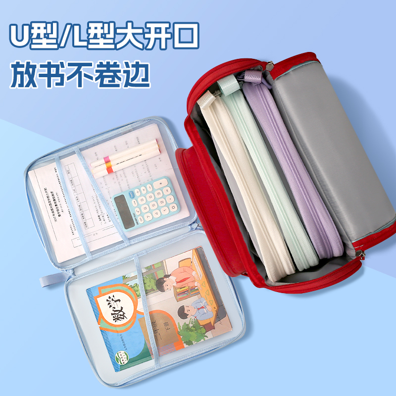 得力防水文件袋多层试卷收纳袋大容量多功能小学生资料袋初高中生文件包大开口加厚透明手提袋拉链式试卷袋子