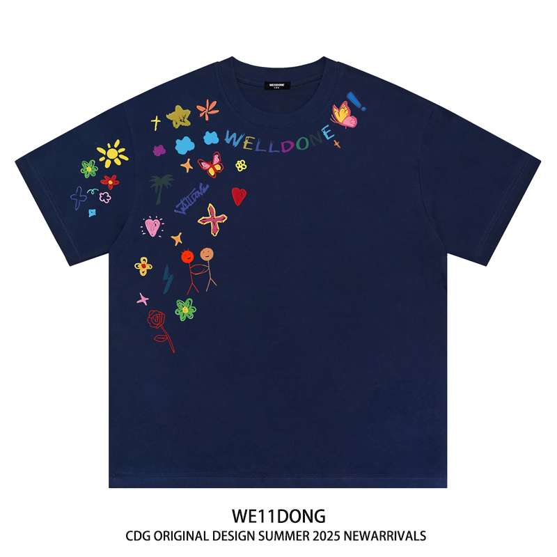 WE11DONE CDG潮牌创意卡通涂鸦印花男女情侣圆通宽松纯棉短袖t恤