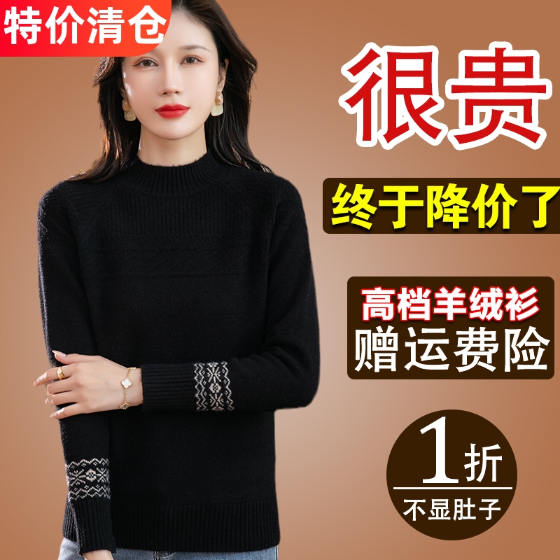 羊毛衫女100纯羊毛秋冬加厚毛衣女宽松半高领针织打底衫羊绒上衣