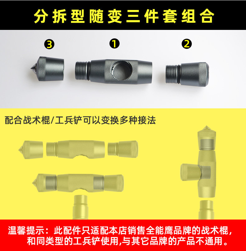 户外多功能T型登山杖手柄铝合金战术棍多用途配件工兵铲手柄接头