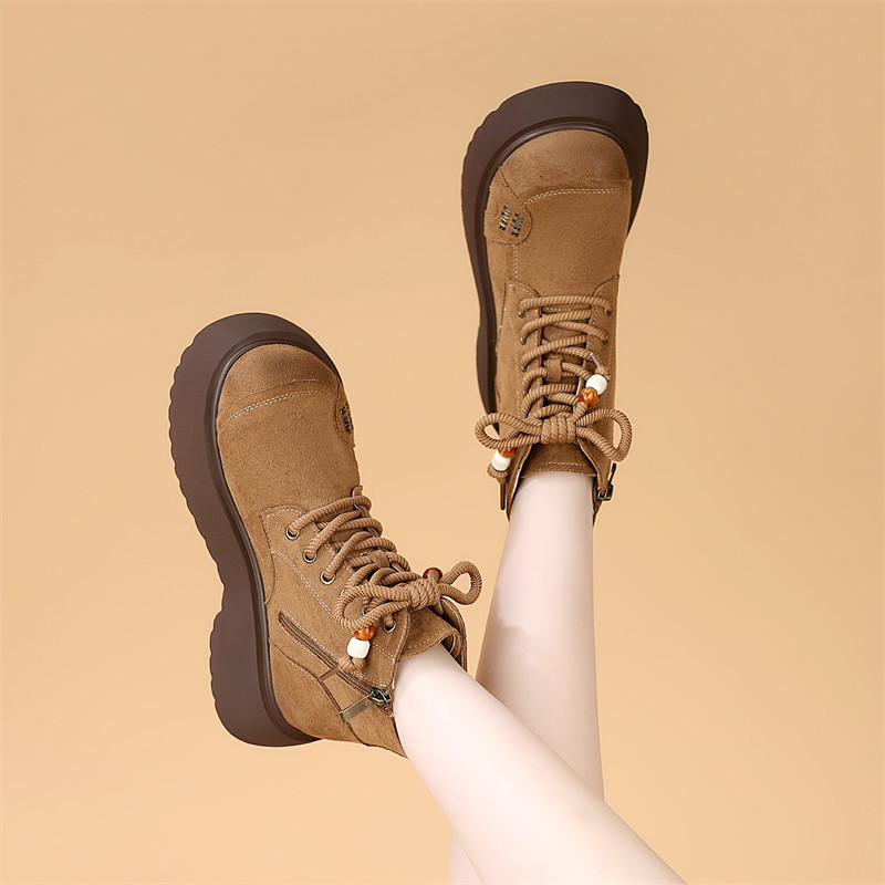 绒面厚底马丁靴女2025年秋冬新款系带百搭显脚小女靴显瘦轻便短靴