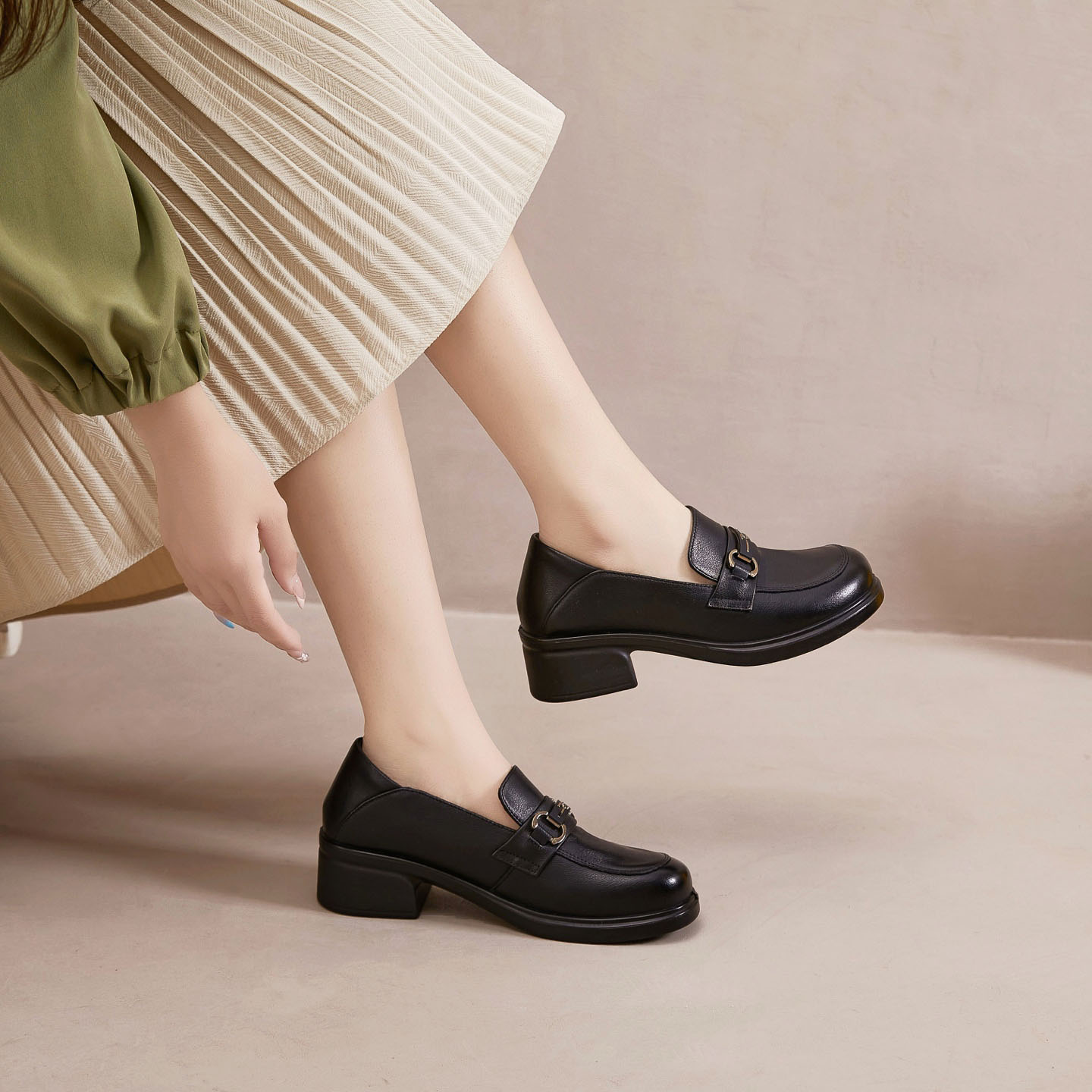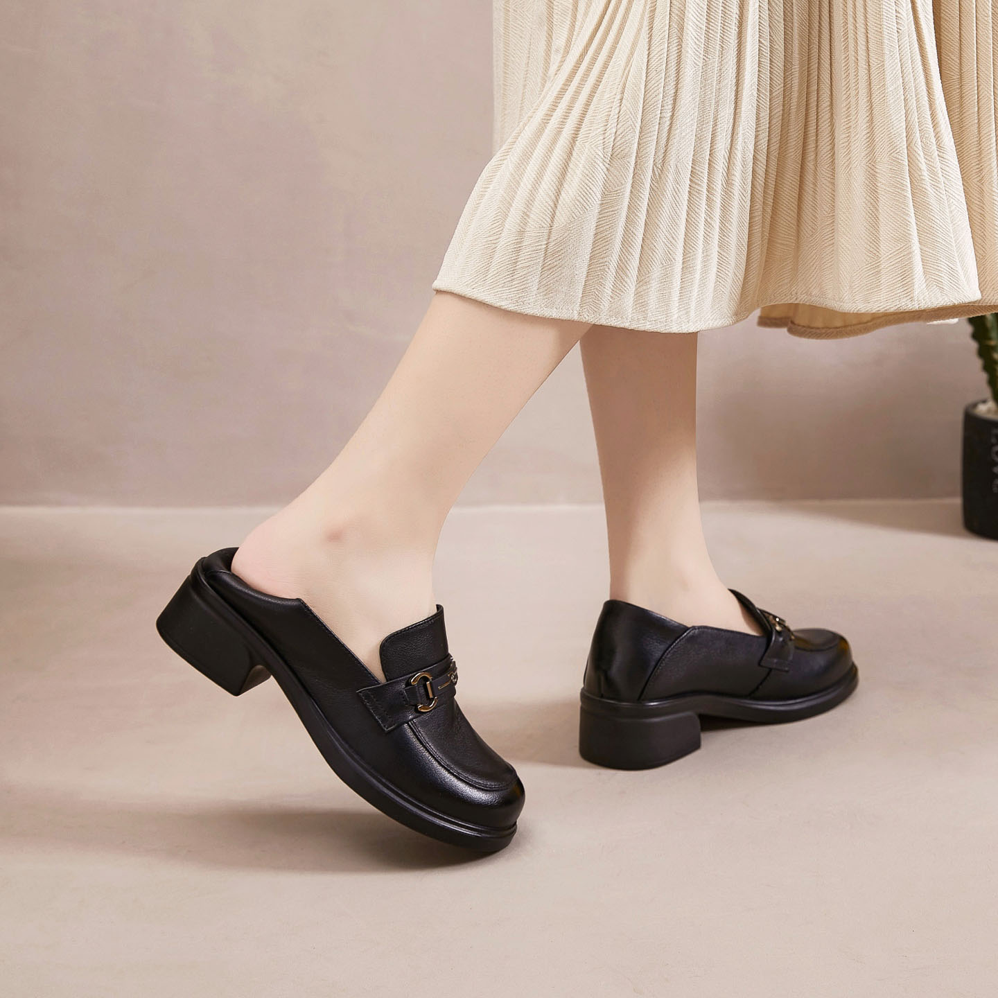 头层牛皮便捷懒人一脚蹬乐福鞋女2025秋季百搭单鞋休闲真皮妈妈鞋