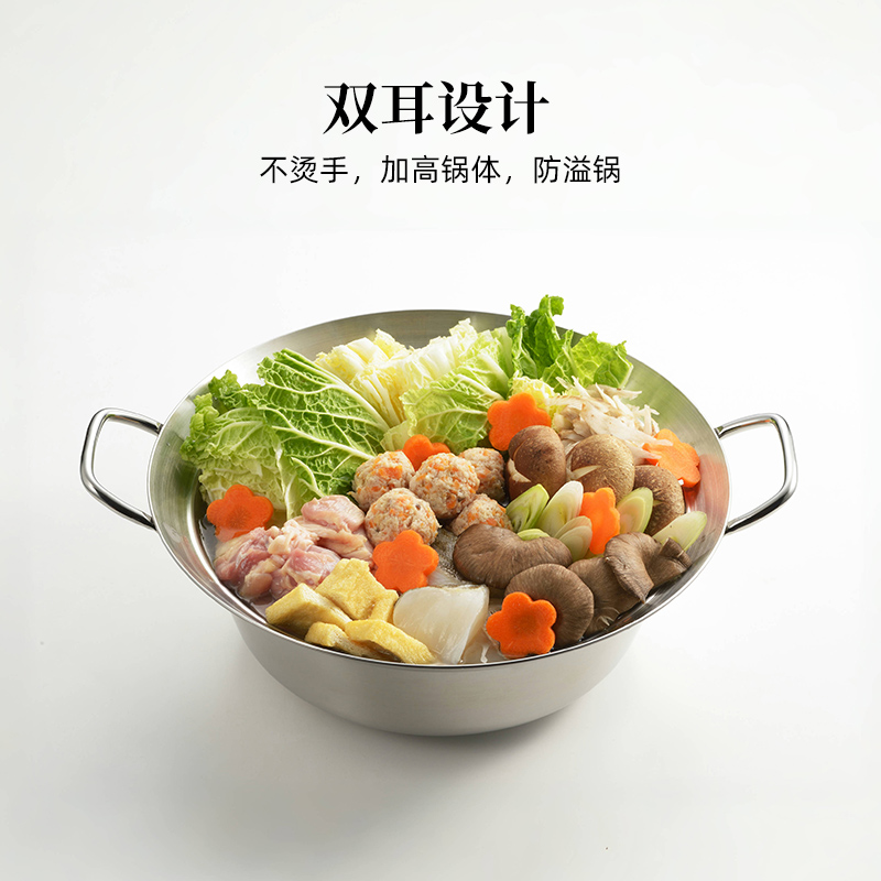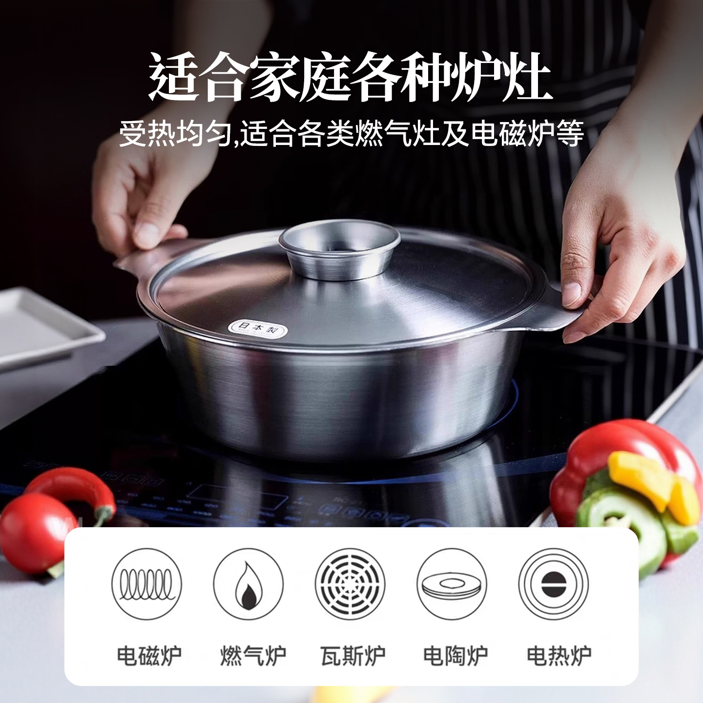 吉川进口汤锅YOSHIKAWA无涂层不锈钢双耳火锅家用炖煮锅电磁炉