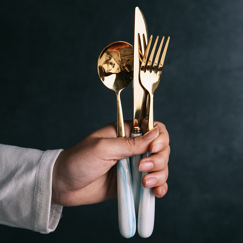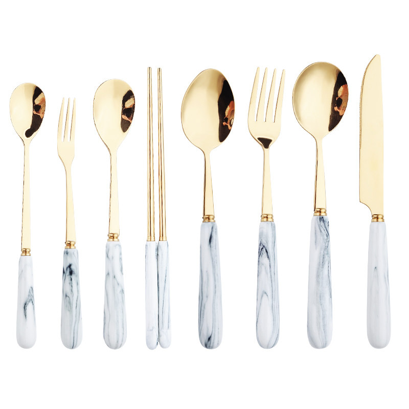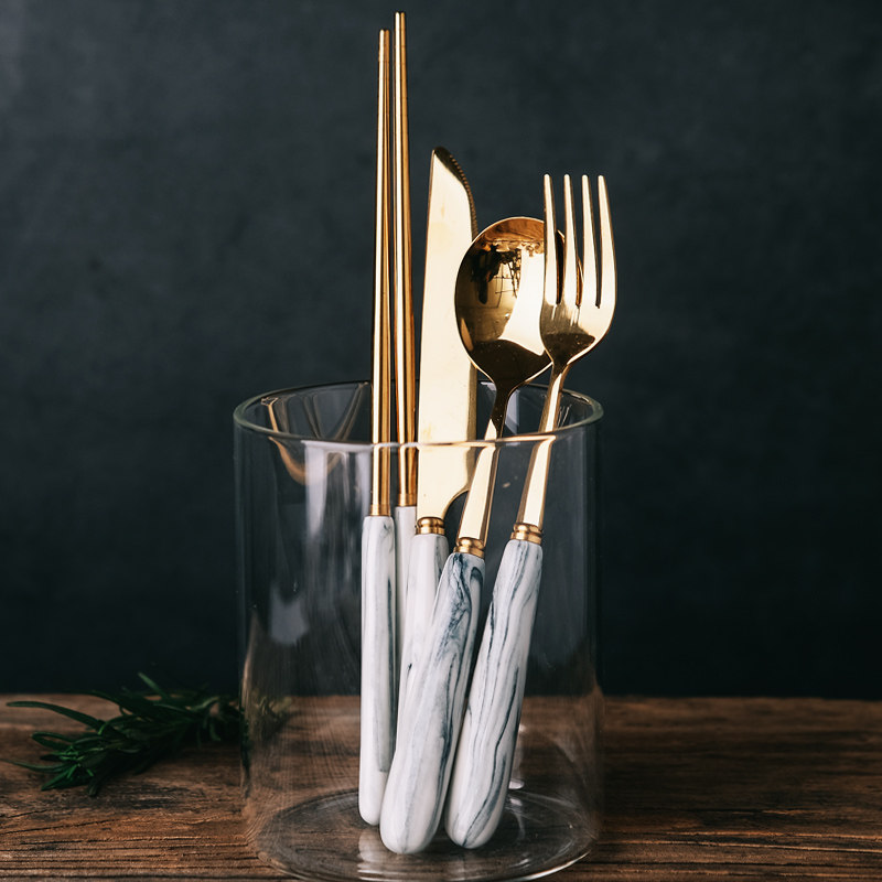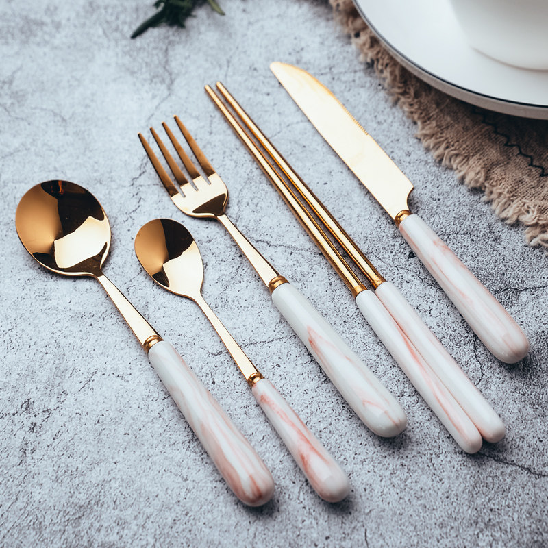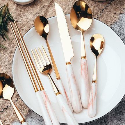 网红粉金牛排刀叉套装创意甜品叉咖啡勺筷子两件家用西餐餐具全套
