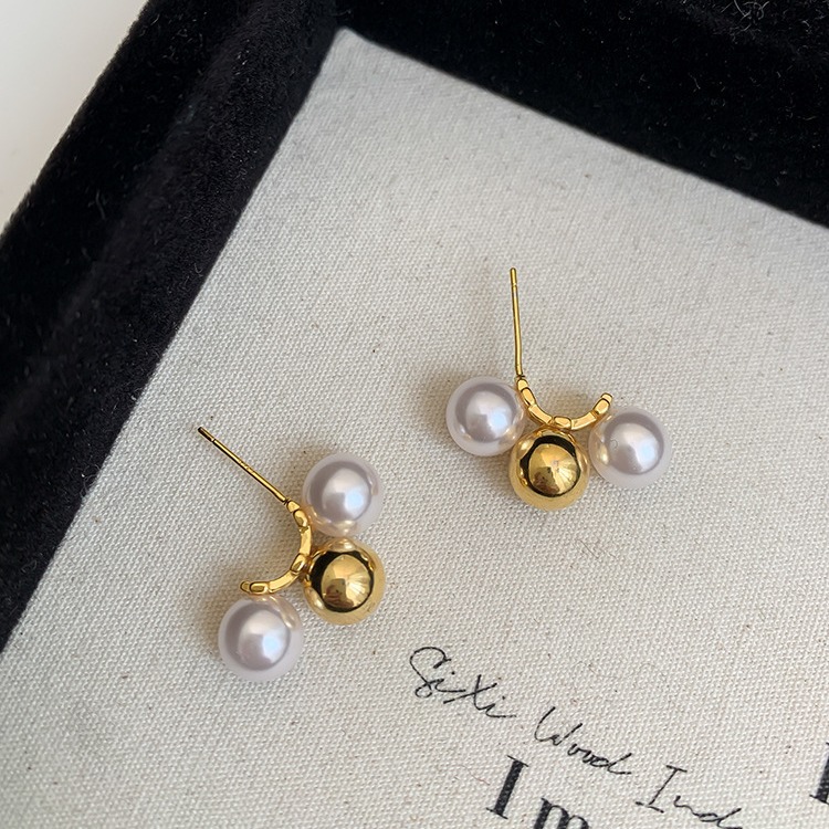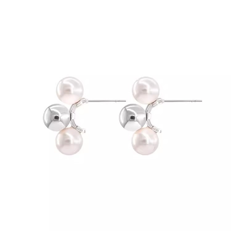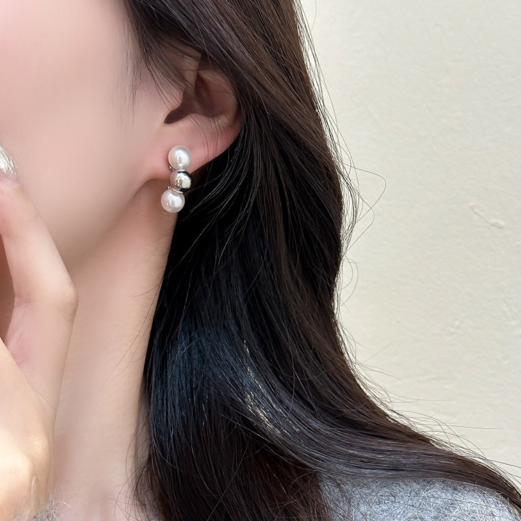 srrmhyn法式珍珠弧形耳环女小众设计感简约气质耳钉温柔风耳饰