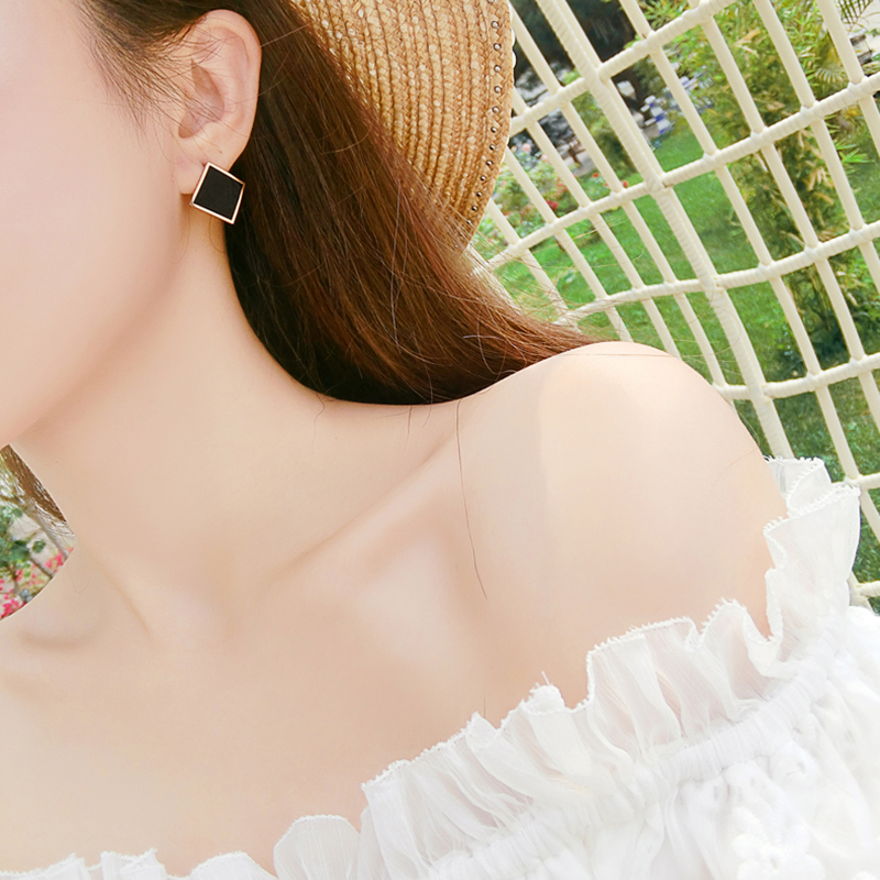钛钢黑色菱形百搭防过敏耳环