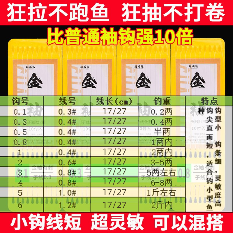 0.1号金袖短子线双钩绑好成品套装小鱼钩小白条鲫鱼钩野钓有无刺
