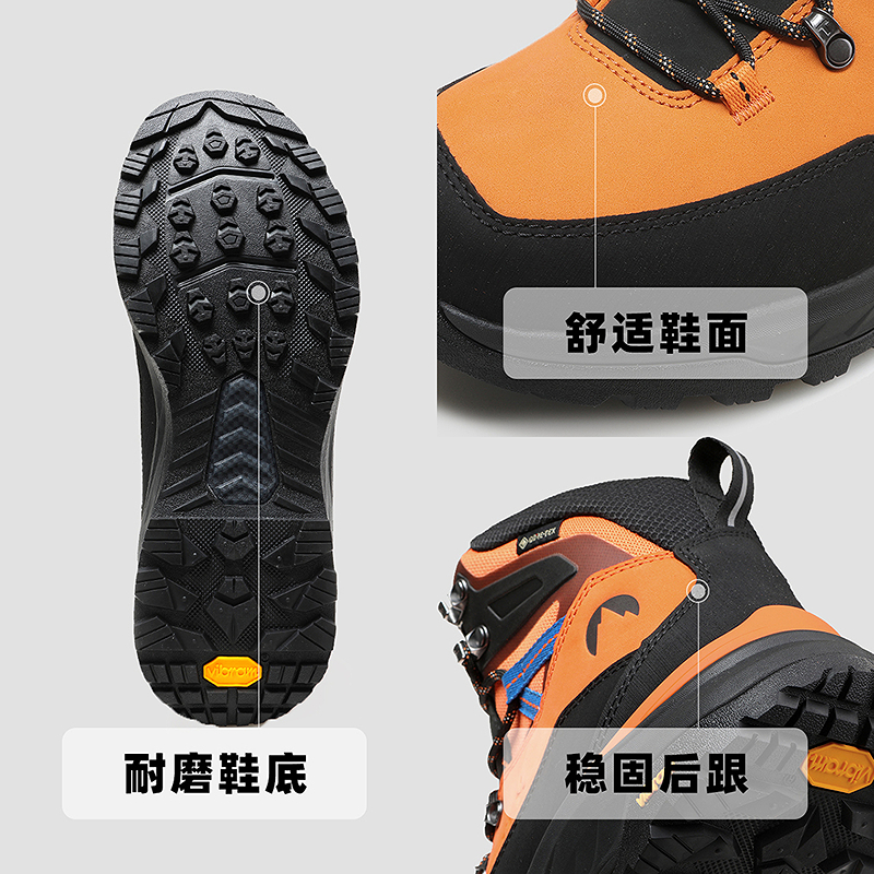 探路者2025新款户外徒步男式GORE-TEX防水VIBRAM耐磨中帮登山鞋