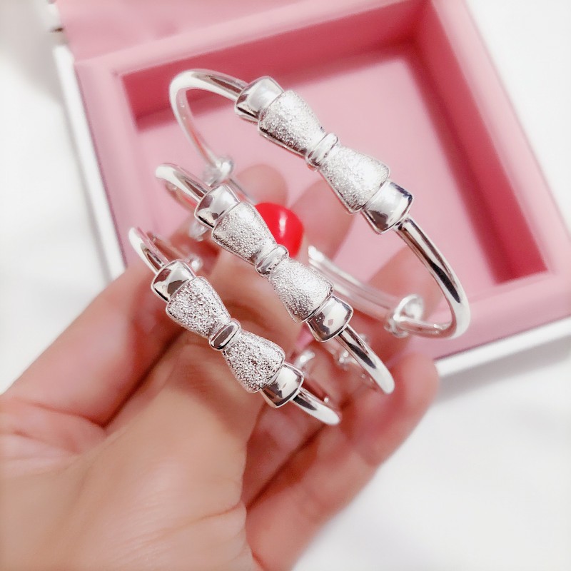 香港正生纯银蝴蝶结抖音kt猫中童手镯足银999婴儿童男女宝宝礼物