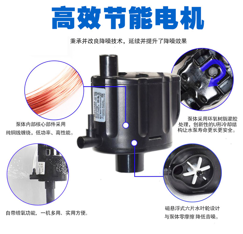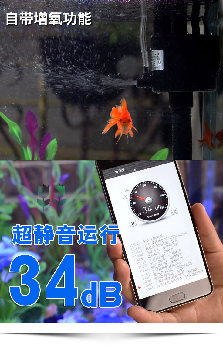 海斯宝鱼缸水泵过滤器三合一增氧潜水泵静音上循环多功能小型水泵