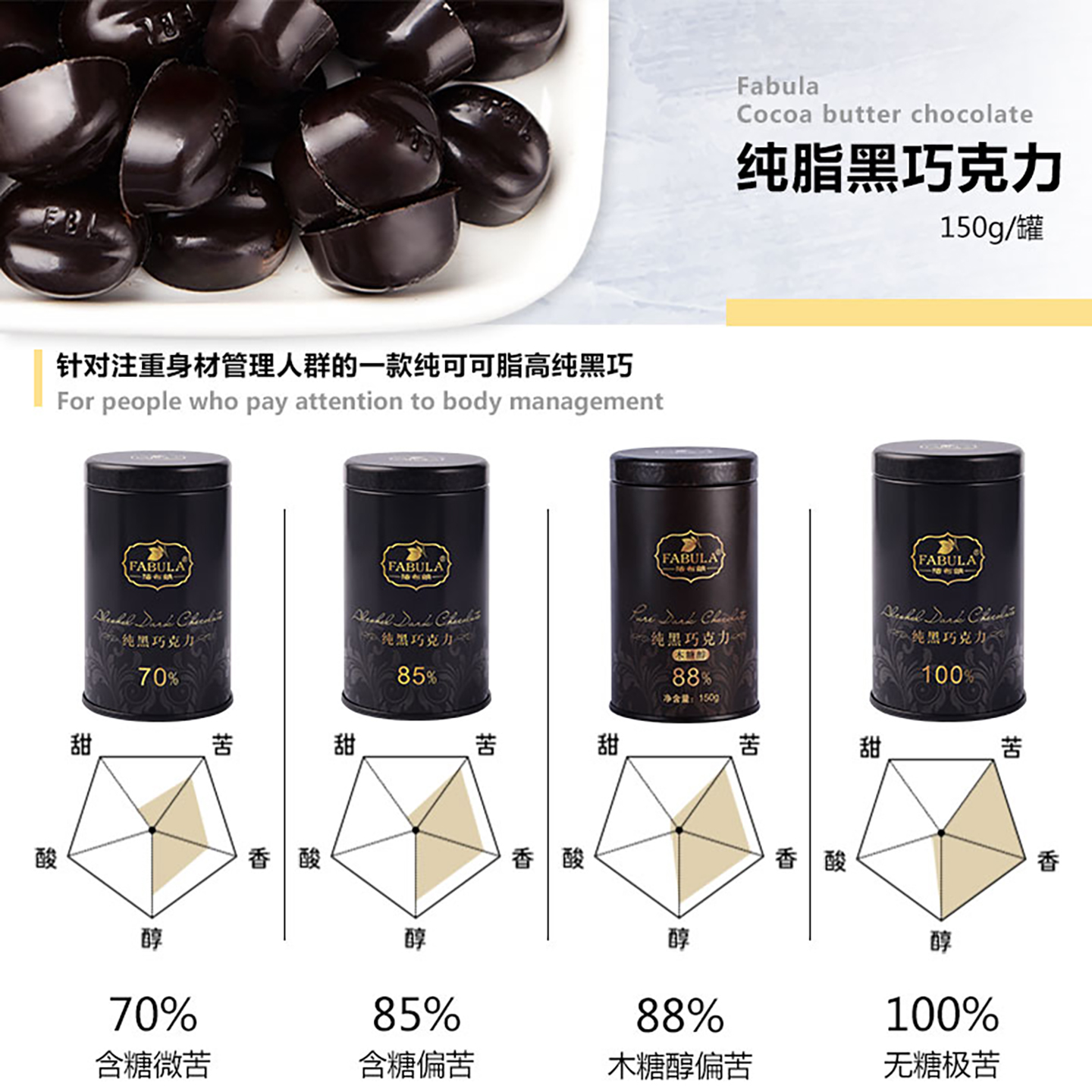 法布朗纯可可脂黑巧克力100%无蔗糖超苦健身88木糖醇网红烘焙零食