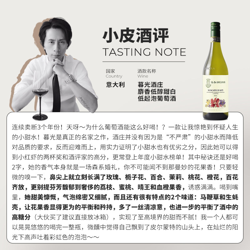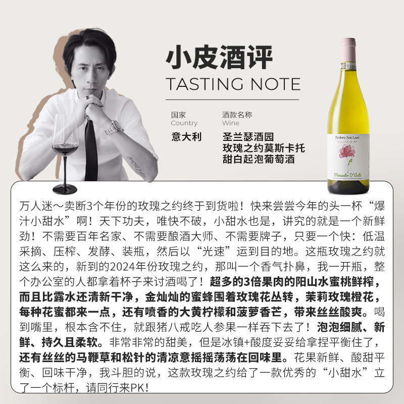 玫瑰之约!意大利进口莫斯卡托起泡酒阿斯蒂moscato气泡甜白葡萄酒