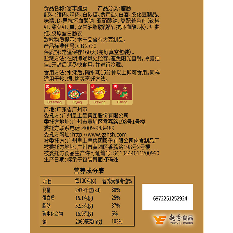 皇上皇广式腊肠腊肉富丰腊肠中华老字号广东特产香肠