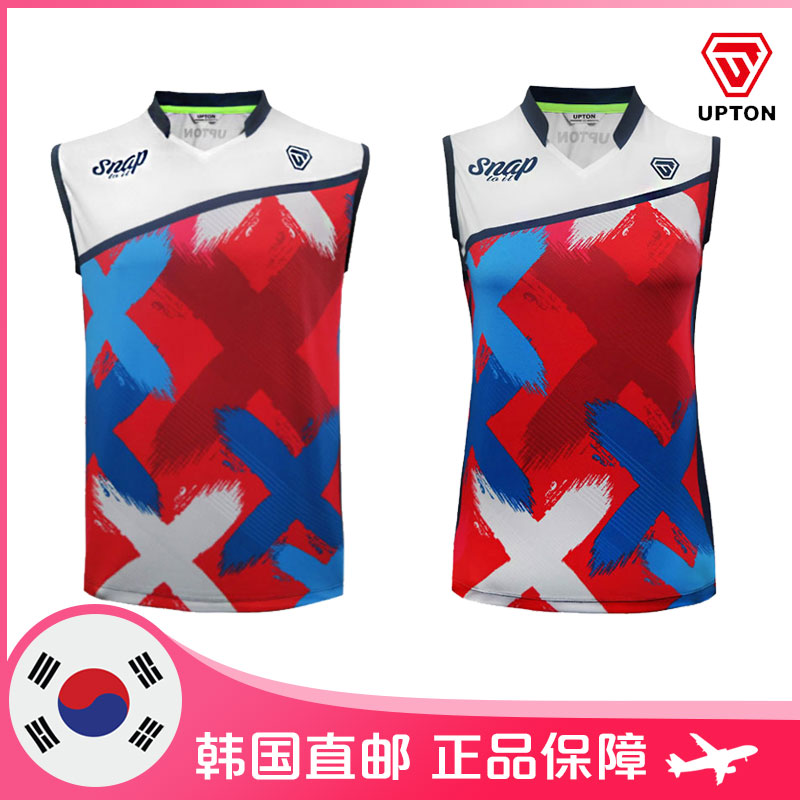 UPTON韩国羽毛球服上装 拼色训练运动速干无袖短袖 粉色幸运草