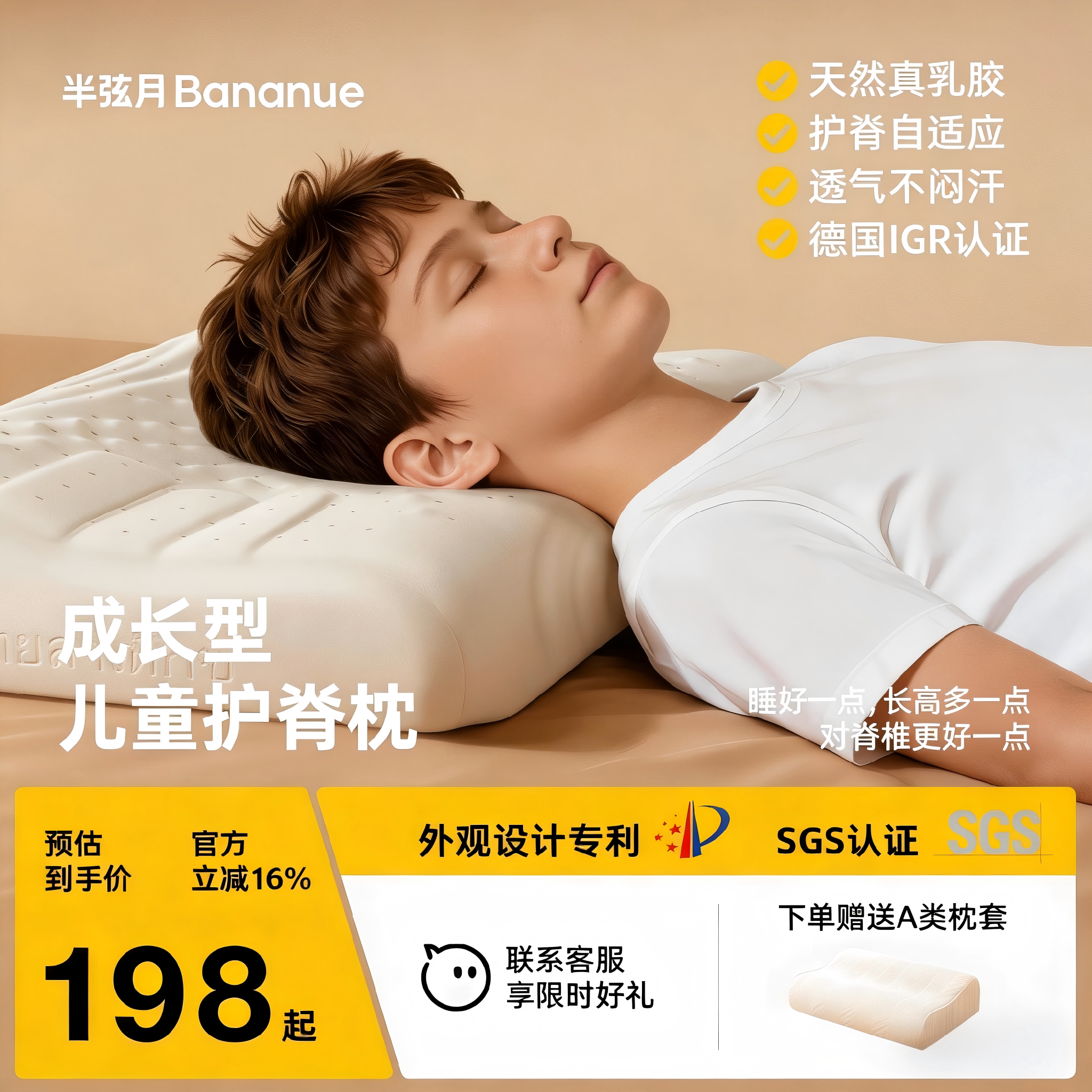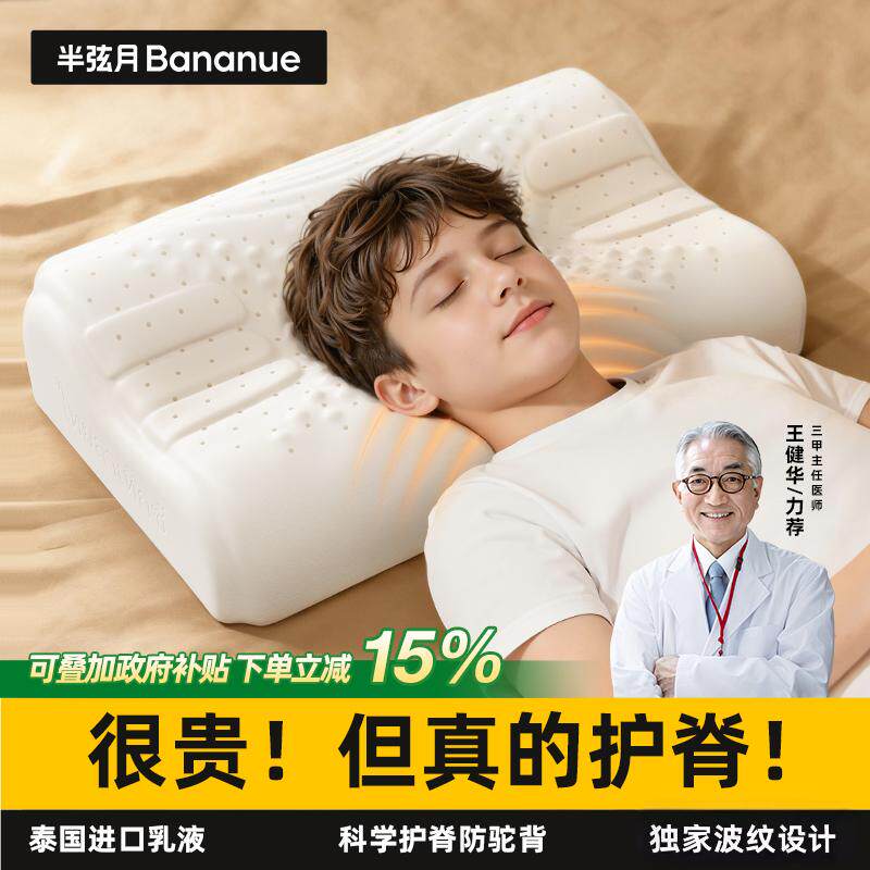 枕头儿童乳胶护颈椎助睡眠3-18岁及以上青少年学生官方正品半弦月