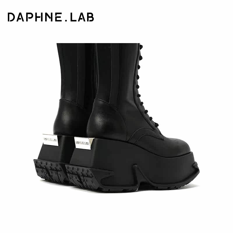 DaphneLab方糖厚底绑带过膝靴