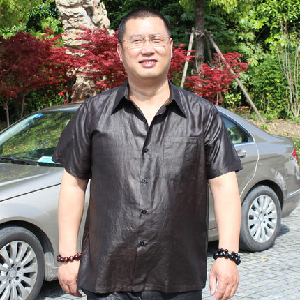 100%桑蚕丝男装夏短袖香云纱衬衫