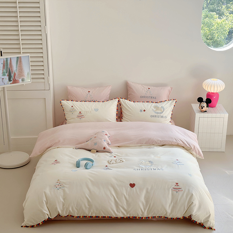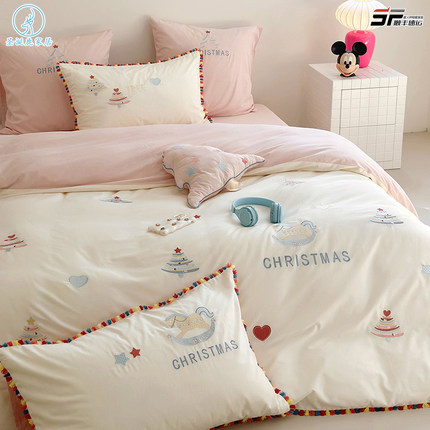 60支卡通儿童少女心全棉水洗棉四件套女孩纯棉被套宿舍三件套床品