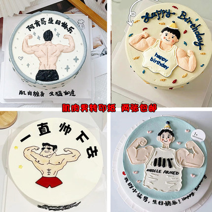 肌肉男健身男神巧克力转印纸生日蛋糕装饰减肥猛男烘焙用纸