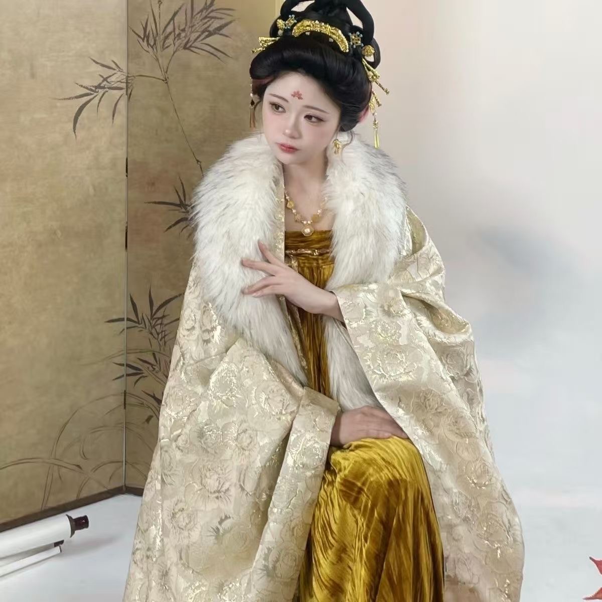 【大唐贵女】唐制丝绒齐胸破裙大袖法门寺披袄冬季汉服