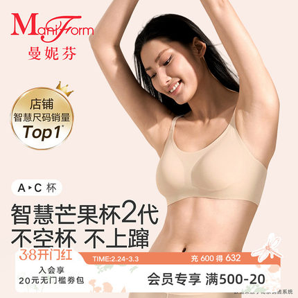 曼妮芬芒果杯智慧无尺码无痕内衣女无钢圈背心不空杯文胸舒适胸罩