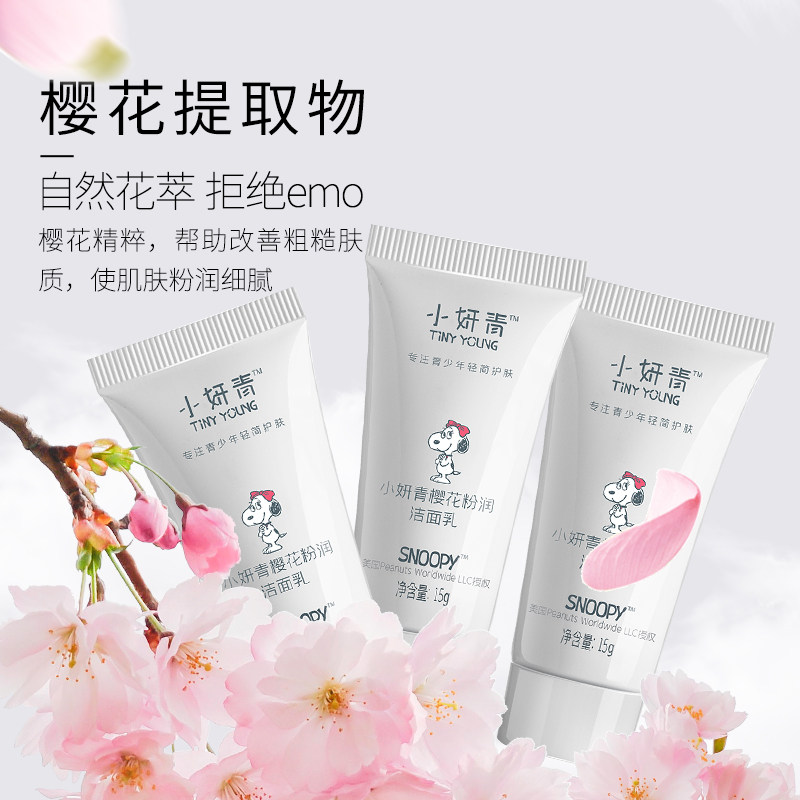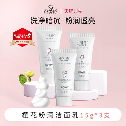 U先试用小妍青粉润樱花洗面奶旅行装女生女孩洁面乳清洁保湿3支